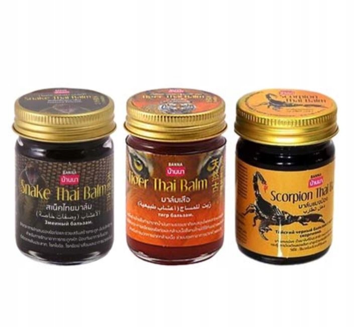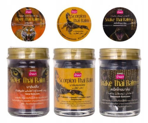Banna Scorpion Thai Balm Black to tradycyjny tajski balsam ziołowy o intensywnym działaniu rozgrzewającym. Jego wyjątkowa formuła zawiera ekstrakt z jadu skorpiona, olej kokosowy oraz bogatą mieszankę ponad 100 ziół leczniczych, które wspierają regenerację mięśni i stawów oraz pomagają złagodzić ból.